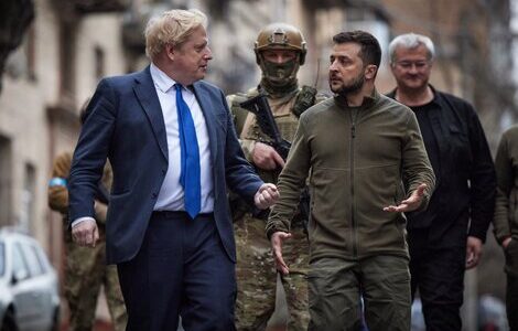 Mientras Boris Johnson visitaba Kiev, Rusia atacó y destruyó un aeropuerto ucraniano