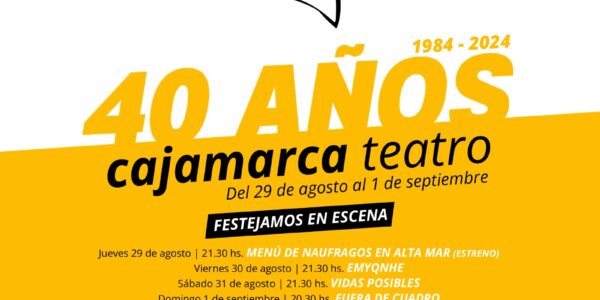 Cajamarca Teatro cumple 40 años en la escena de Mendoza y lo celebra con destacadas actividades desde el 29 de agosto al 1 de septiembre. Propuestas teatrales y un taller son parte de ellas