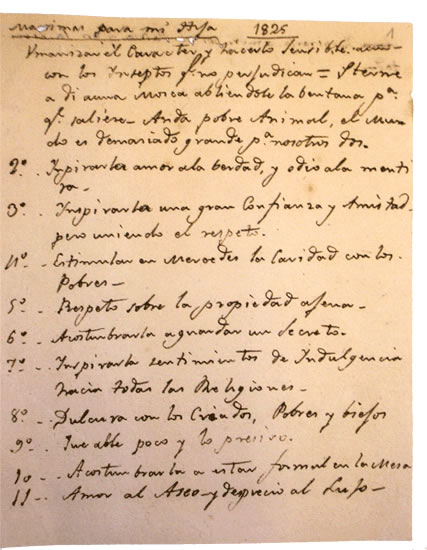 En 1825, José de San Martín escribe una lista de consejos para su hija Merceditas, donde vuelca sus ideales educativos.