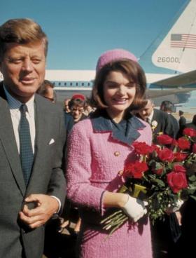 John Fitzgerald Kennedy y su esposa Jackie salen del Texas Hotel de Fort Worth. Jackie va de rosa. Con un trajecito Chanel que no es Chanel (el diseño era de la casa francesa pero la confección de Chez Ninon, una boutique de Nueva York que trabajaba con materiales de Chanel). Debido a los eventos de ese día y al tiempo que Jackie se lo dejó puesto, se convirtió en una de los atuendos femeninos más célebres de la historia. Dos detalles curiosos: no era la primera vez que Jackie lo usa y es rosa pálido (el segundo dato, en la época, fue ignorado la gran mayoría porque la muerte de Kennedy ocurrió, principalmente, en blanco y negro).