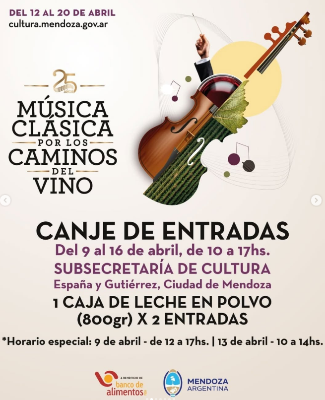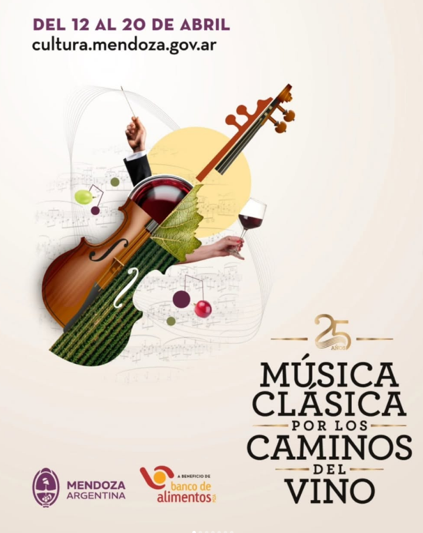 Del 12 al 20 de abril de 2025, se llevará a cabo una nueva edición del festival internacional Música clásica por los caminos del vino, organizado por la Subsecretaría de Cultura (cultura.mendoza) dependiente del Ministerio de Educación, Cultura, Infancias y DGE del Gobierno de Mendoza (educacionculturainfanciasydge).