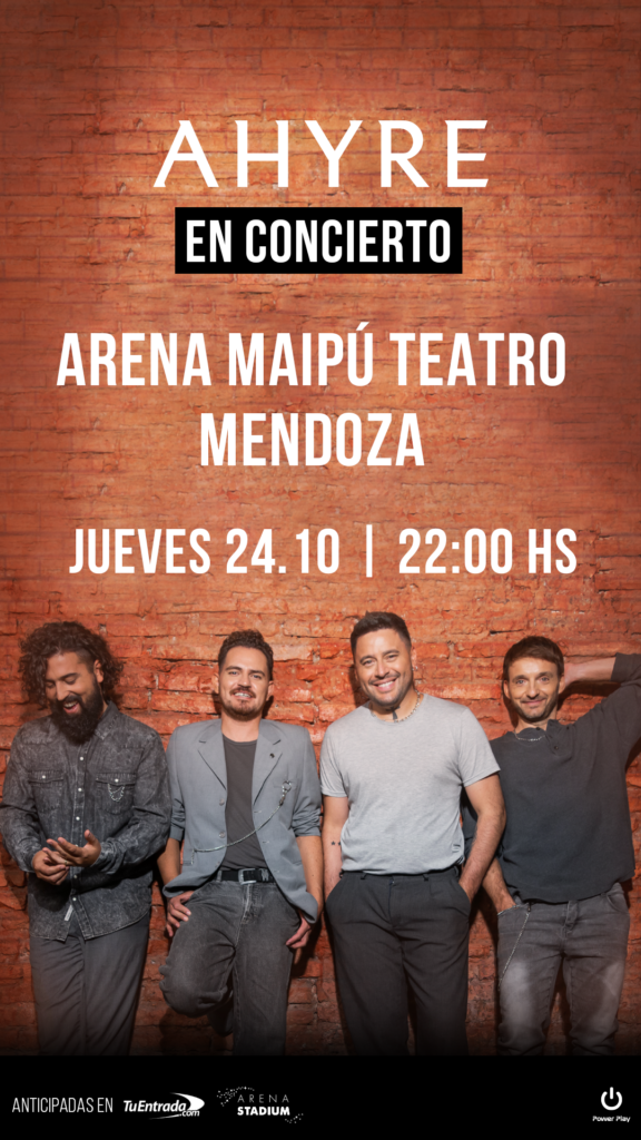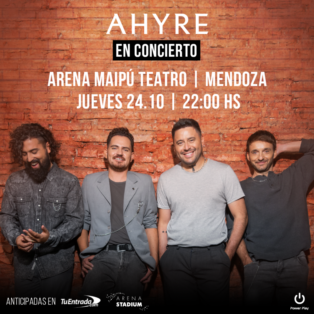 El grupo ganador del Premio Viña del Mar 2024 AHYRE (ahyremusica) llega a Mendoza con su nuevo show En Concierto. La banda se presentará por primera vez en el Arena Maipú Teatro, el jueves 24 de octubre. Las entradas están disponibles en Tuentrada.com y boletería del Arena.