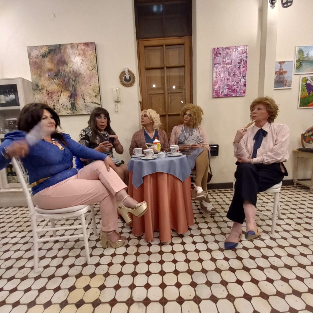 Éstas amigas van a apareciendo de a poco, como típica comedia de puertas y nos hacen reír desde un principio. La casa es de Rosa (Renzo Bruno), Facundo Fozco interpretando a Virginia llega en primero, un poco para imponer su personalidad y hacernos parte de sus parlamentos de alguna manera. El inicio de los enredos es cuando llega Carmen (Ricardo Nuarte) y todo termina de descontrolarse con el arribo de los personajes de Susana Leytes y Viviana Manzanares
