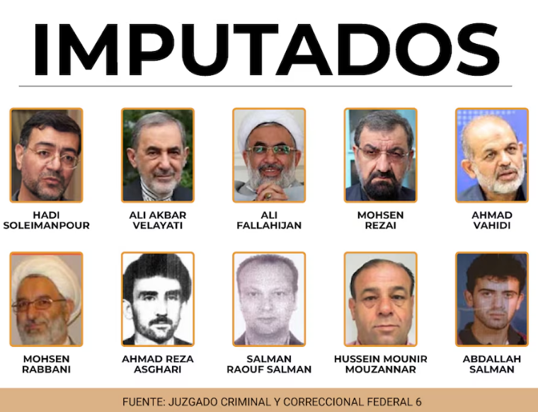 - Alí Fallahijan: Quien se desempeñó como Ministro de Inteligencia y Seguridad de Irán entre 1989 y 1997. La acusación lo señaló como el coordinador de los agentes de inteligencia iraní en el marco del atentado.