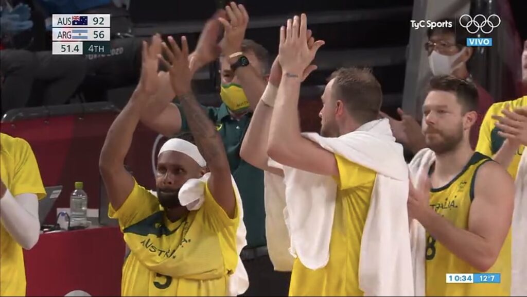 Ya en el tercer período siguió la tendencia en favor de Australia, que rotó mejor la pelota en el ataque y encontró soluciones aún con Mills sentado en el banco de suplentes. Dante Exum tuvo un buen pasaje en el final del parcial y los oceánicos sacaron 12 puntos de diferencia para cerrar 60-48.