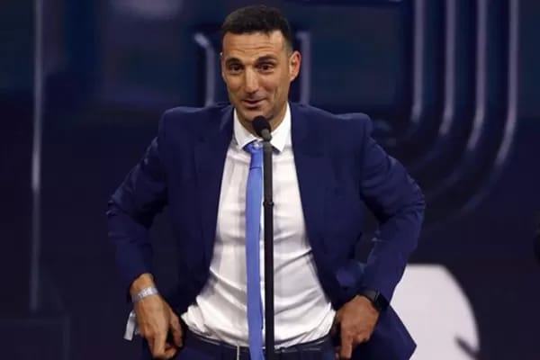 El oriundo de Pujato, que renovó su vínculo con la AFA hasta 2026, venció en la terna a dos nombres usuales en estas galas como Carlo Ancelotti, del Real Madrid, y Pep Guardiola, del Manchester City: «Agradecerles a los jugadores, a esos 26 que nos llevaron a la gloria. Estoy agradecido profundamente a Chiqui Tapia, el presidente de la AFA, por darme la posibilidad de dirigir a la Selección argentina. A Pablo Aimar, Walter Samuel, Roberto Ayala, Matías Manna… más que compañeros de cuerpo técnico, son amigos».