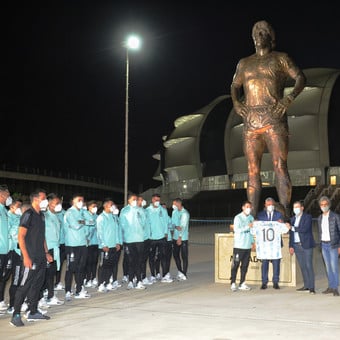 Argentina empató este jueves por la noche, 1 a 1, ante Chile en un encuentro disputado en el estadio único de Santiago del Estero, por la fecha 7 de las Eliminatorias Sudamericanas. Antes del comienzo del partido el seleccionado argentino inauguró la estatua más alta de Diego Maradona que mide cinco metros, también como homenaje al primer partido de Argentina tras la muerte de Diego los jugadores y cuerpo técnico usaron una camiseta con la foto de él en el pecho durante el himno.