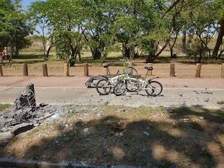 Mientras tanto, oficiales de la Policía de la Ciudad trabajan en el lugar del siniestro. El Ford Focus rojo se mantiene todavía frenado sobre la bicisenda, con el parabrisa efectivamente estallado y con la parte izquierda e inferior abollada debido al impacto. Cerca también se localizan caídas las bicicletas de aquellas personas víctimas de la impericia de este conductor, que aún no fue identificado.