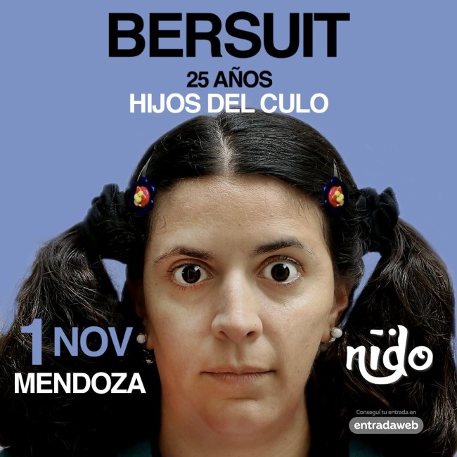 El sábado 1 de noviembre, a las 21 horas , Bersuit (bersuitok) llega a Nido Club –@nidoclub_– (Mitre y esq. Godoy Cruz, Cdad.) para celebrar los 25 años de «Hijos del Culo», uno de sus discos más icónicos, y una placa emblemática del rock nacional en el nuevo siglo. Se viene una noche imperdible para revivir los himnos que marcaron a toda una generación y cantar junto a una de las bandas más grandes del rock argentino. Entradas disponibles en Entradaweb.com.ar.