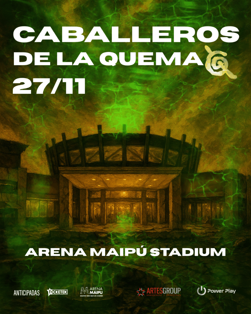 Por motivos de producción ajenos a la banda, el show de Los Caballeros de la Quema (caballerosdelaquema) previsto para el 3 de octubre en el Arena Maipú Stadium se reprograma para el jueves 27 de noviembre, en el mismo lugar.