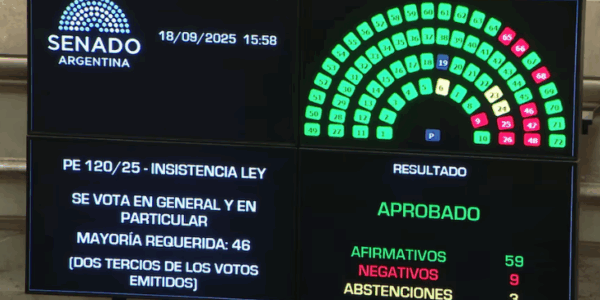 Ley de emergencia en dicapacidad: El rechazo a la decisión de la Casa Rosada recibió 63 votos -siete en contra- y obtuvo con holgura los dos tercios. La norma estará vigente hasta el 31/12/26, prorrogable por un año más