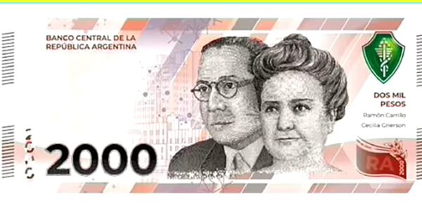 Para el nuevo papel moneda de $2000 se eligió a figuras destacadas de la medicina argentina: Cecilia Grierson y Ramón Carrillo, junto a otras imágenes alusivas a la salud pública