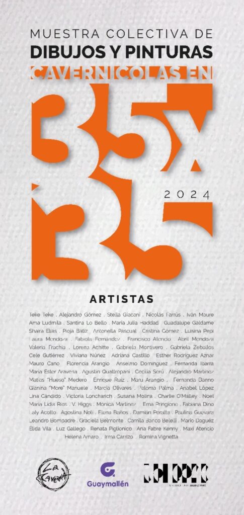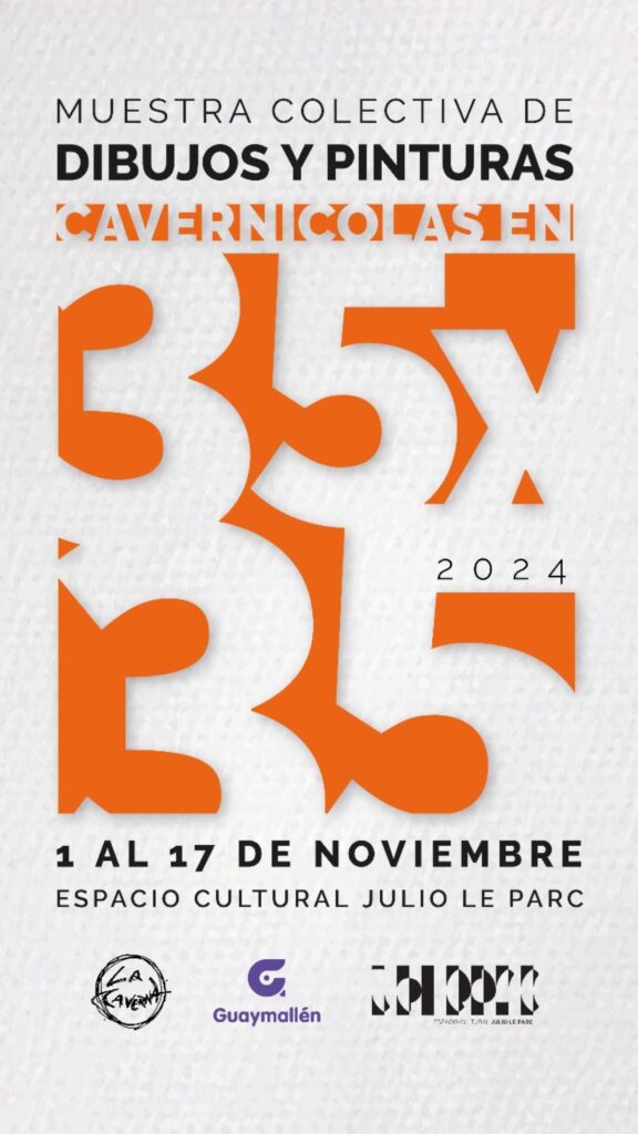 “Cavernícola 35 x 35” tendrá su noche de apertura el viernes 1 de noviembre, a las 20h, en el Espacio Cultural Julio Le Parc. La entrada es libre y gratuita. La exposición podrá visitarse hasta el domingo 17.