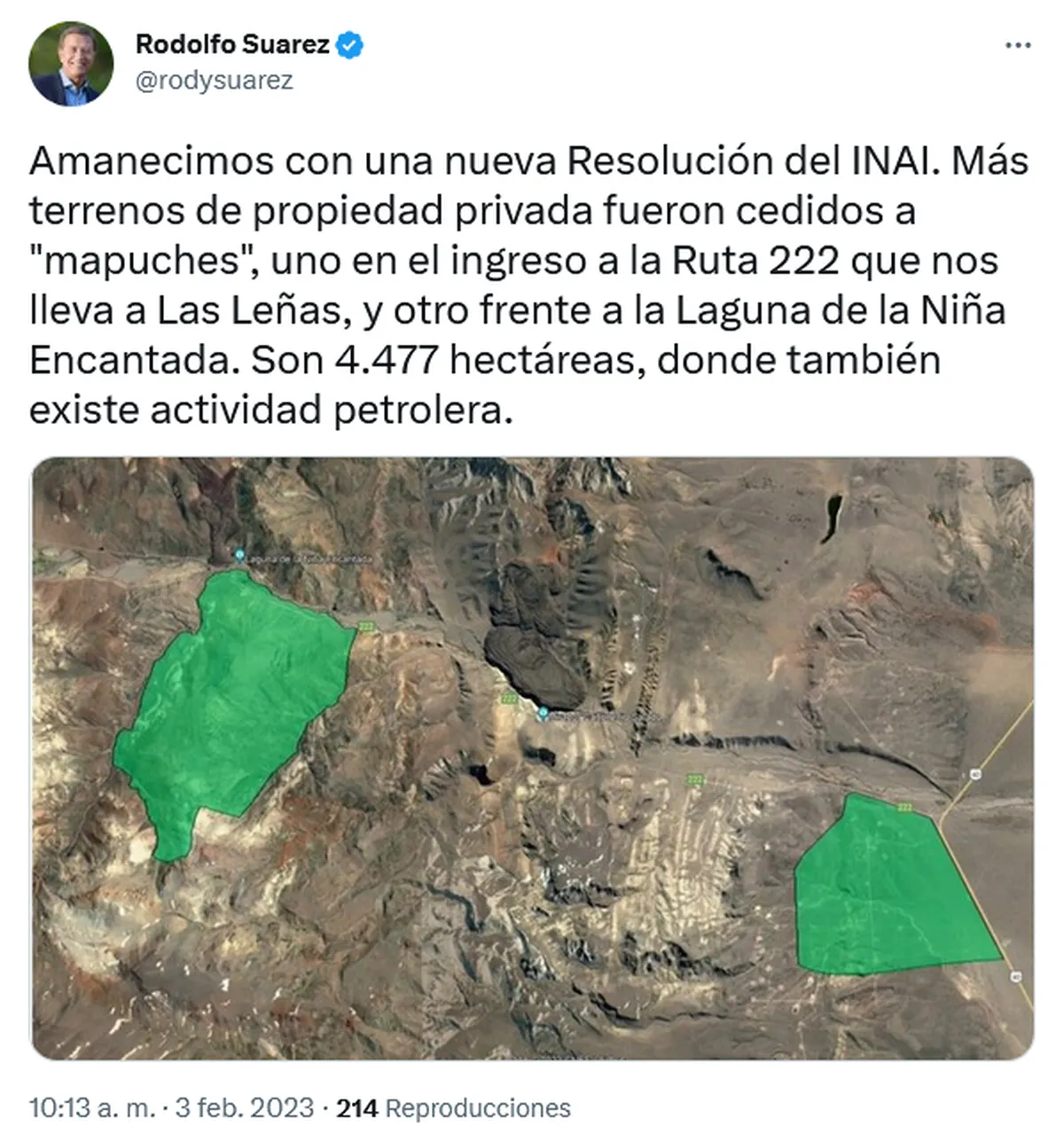 El gobernador Rodolfo Suarez repudió la resolución del Instituto Nacional de Asuntos Indígenas (INAI) que reconoce la ocupación de 4.477 hectáreas en Malargüe en favor de una comunidad mapuche.