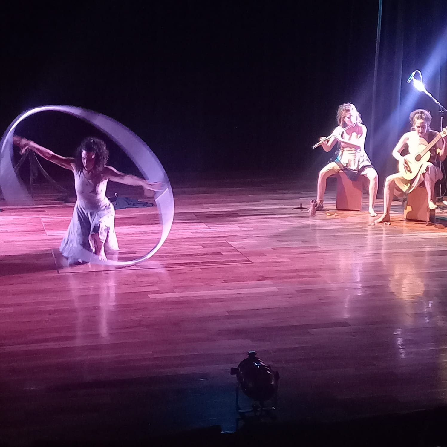 Carla Gisella Masignani, conocida como “Lolot Lanet” (lolotlanet) nos conquistó en Got Talent y nos sigue conquistando con el arte de las danzas acrobáticas y la rueda cyr luciéndose en la puesta de Claroscuro. Ella es una excelente actriz, bailarina, dramaturga y hasta productora de esta puesta tan linda… Y no está sola en escena, como dije antes hay dos vocecitas… grandes voces en realidad y músicas que la acompañan a la protagonista por su viaje interior hasta encontrar la luz… ellas son Melisa Budini ( @melibudini) y Eugenia Moreno (@negraeuge). Por último, pero para nada menos importante, encontramos en el trabajo de dirección, puesta en escena y de asistencia en la dramaturgia, a la hermosa Érica Gómez (@ericagomezlobos).