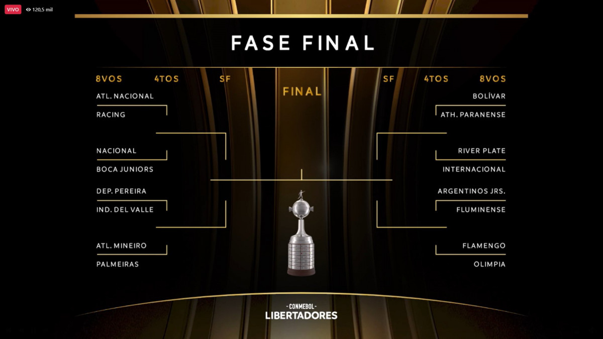 Las bolillas decantaron que Boca visitará el Gran Parque Central de Montevideo para medirse ante Nacional de Uruguay. Por su parte, River volverá a volar a Brasil para enfrentar al Inter de Porto Alegre. Además, Racing se cruzará ante Atlético Nacional de Colombia, mientras que a Argentinos Juniors le tocará bailar con una difícil: Fluminense.
