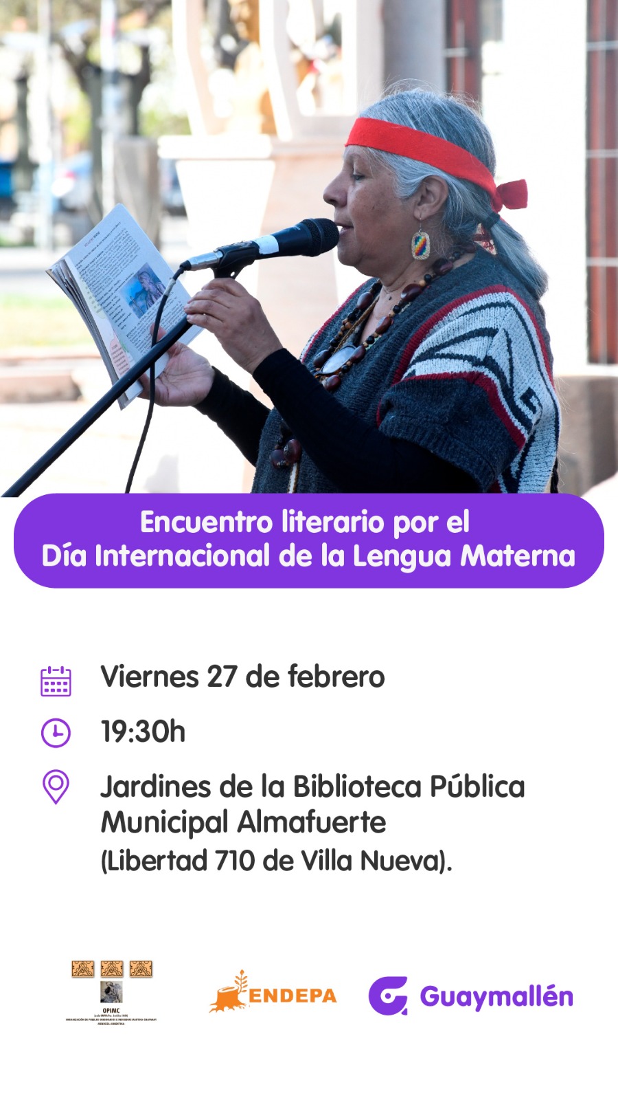 La Municipalidad de Guaymallén invita a los vecinos a una gran muestra literaria que se realizará el viernes 27 de febrero, a partir de las 19:30 horas, en la Biblioteca Pública Municipal Almafuerte (Libertad 710, Villa Nueva), con motivo de celebrar el Día Internacional de la Lengua Materna.