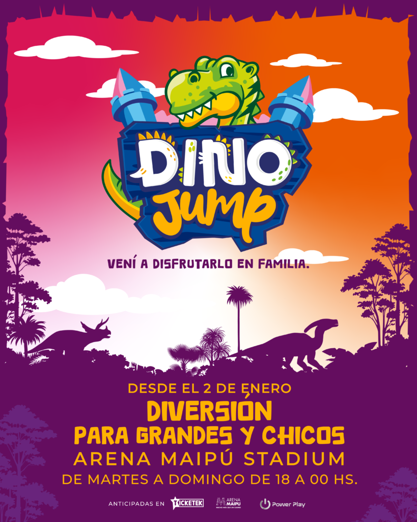 Desde el 2 de enero, el Arena Maipú Stadium se transformó en un parque jurásico con la llegada de Dino Jump, una experiencia inmersiva que combina un inflable gigante de última generación con dinosaurios en escala real.
