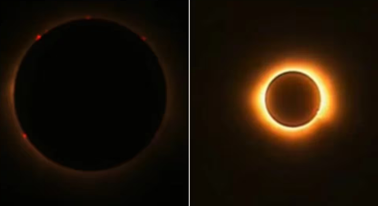 - Totalidad: en este momento cúspide del eclipse, cuando la Luna oculta completamente al Sol, se puede observar directamente sin protección ocular. La visibilidad de la cromosfera y la corona solar transforma el cielo en una escena de otro mundo. La totalidad ofrece un breve lapso para disfrutar de una experiencia astronómica sin igual, acompañada de un descenso de la temperatura y un sobrecogedor silencio.