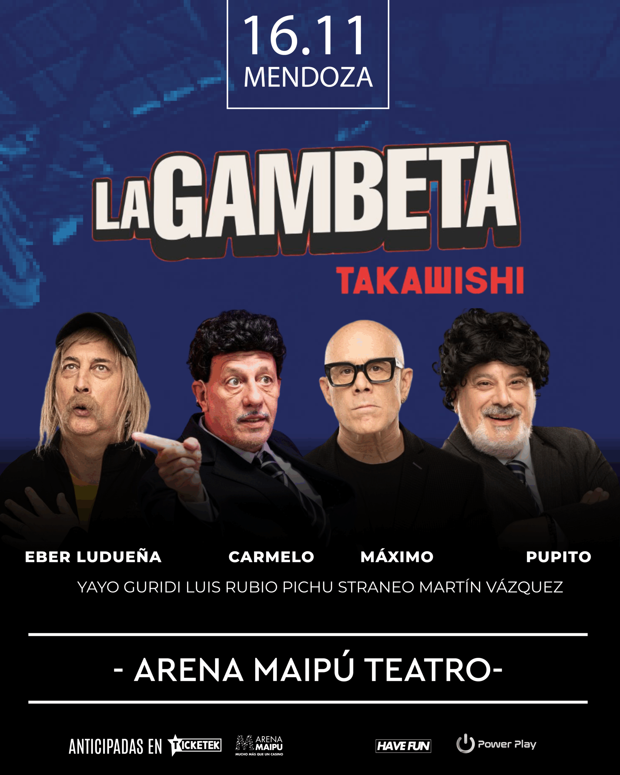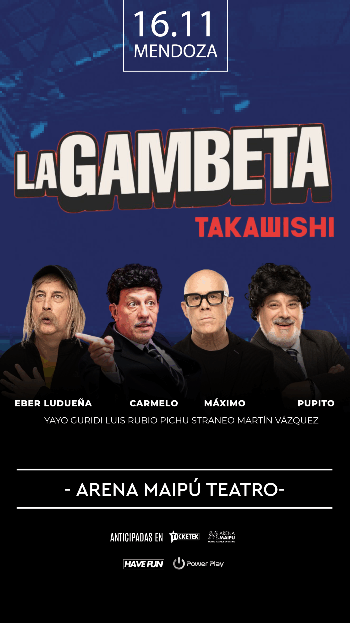 La Gambeta (eligdelagambeta), el espectáculo que combina comedia, sátira futbolera y la frescura de la improvisación con grandes del humor, se presentará el domingo 16 de noviembre, en el Arena Maipú Teatro.