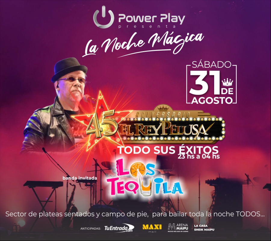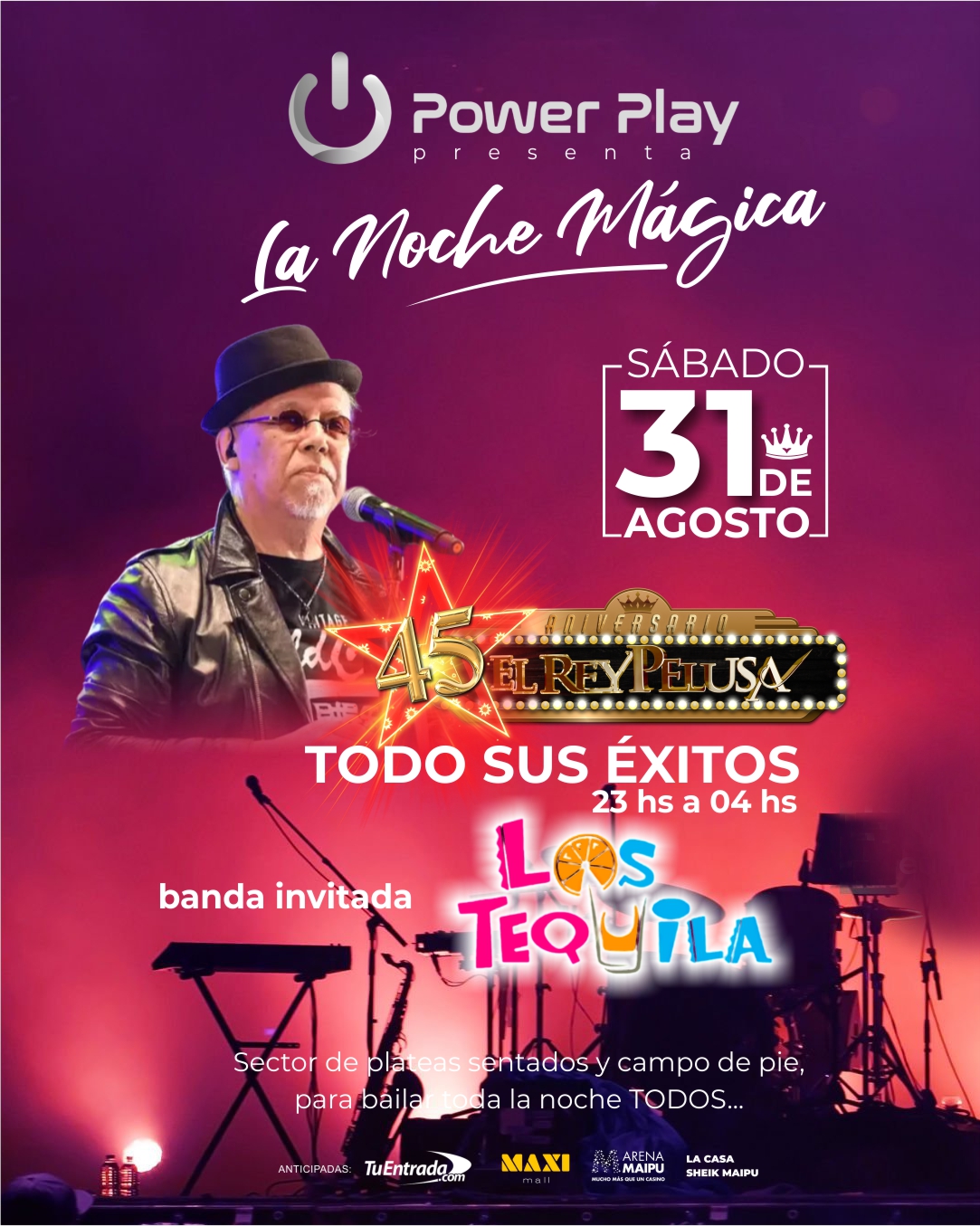 El Rey Pelusa (elreypelusaoficial) vuelve a Mendoza. Uno de los máximos exponentes del cuarteto celebra sus 45° aniversario con la música en La Noche Mágica, un show para bailar toda la noche. El sábado 31 de agosto, en el Arena Maipú Stadium. Las entradas están disponibles en Tuentrada.com, Maxi Mall y boletería del Arena.