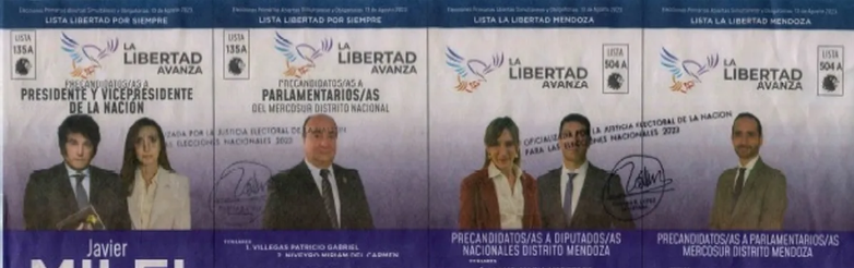 El frente La Libertad Avanza, cuyo precandidato a presidente es Javier Milei, acompañado de Victoria Villarruel como precandidata a vicepresidenta, lleva en Mendoza precandidatos a legisladores nacionales, que aportó el Partido Demócrata local: Mercedes LLano y Facundo Correa Llano. Además, como precandidato a parlamentario del Mercosur se presenta Jorge Santilli.