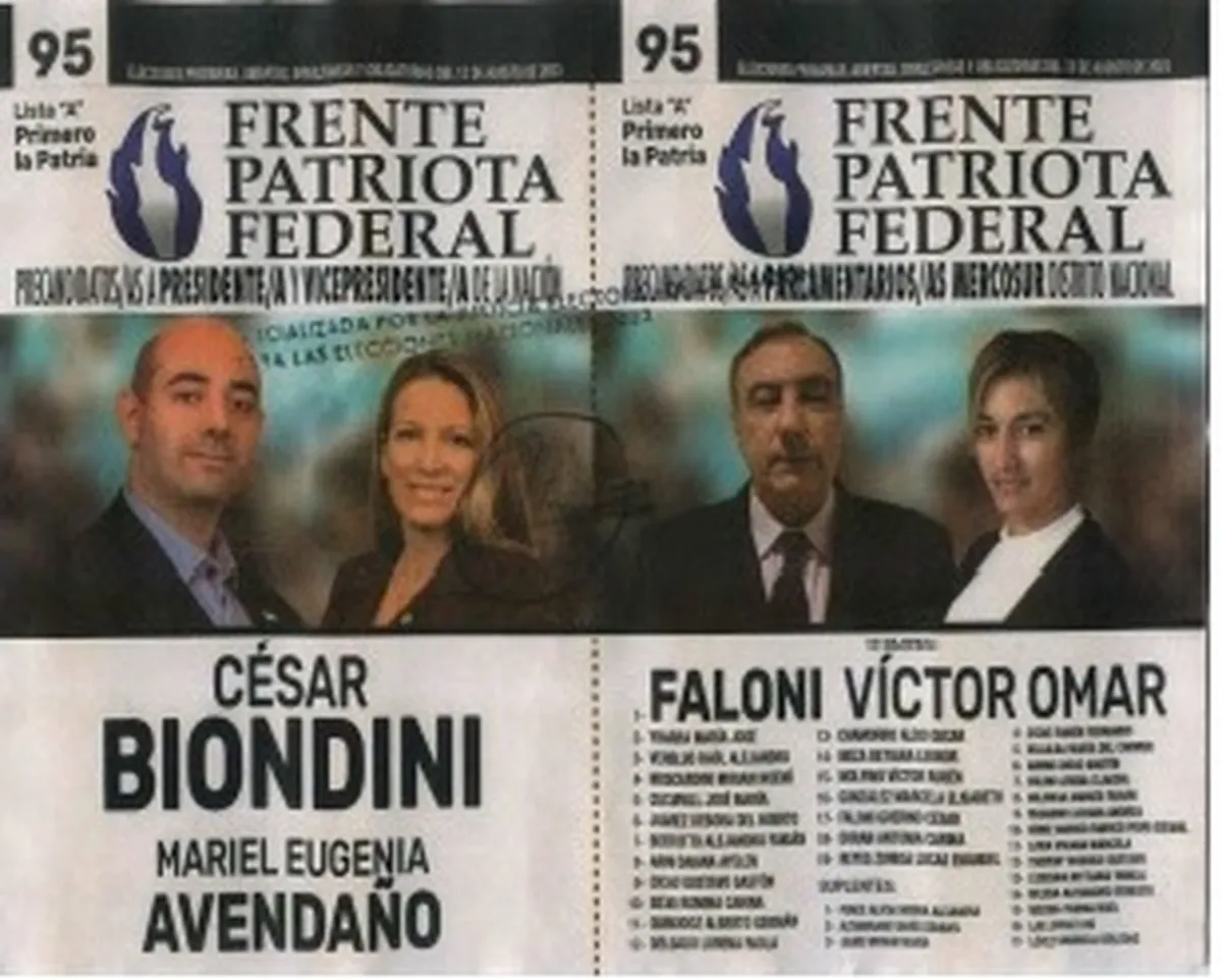 El partido Frente Patriota Federal (lista 95) lleva a César Biondini como precandidato a presidente y a María Eugenia Avendaño como precandidata a vice. En Mendoza, se presentan con lista corta, no llevan precandidatos a diputados nacionales ni a parlamentarios del Mercosur por nuestro distrito.