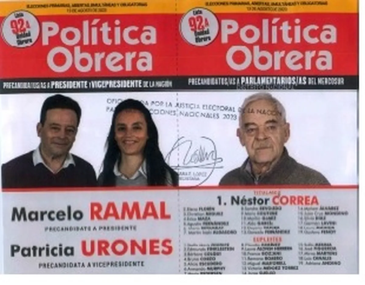 La lista 92 A del movimiento Política Obrera lleva en su fórmula a Marcelo Ramal como precandidato a presidente y a Patricia Urones como precandidata a vicepresidenta. No hay candidaturas locales.