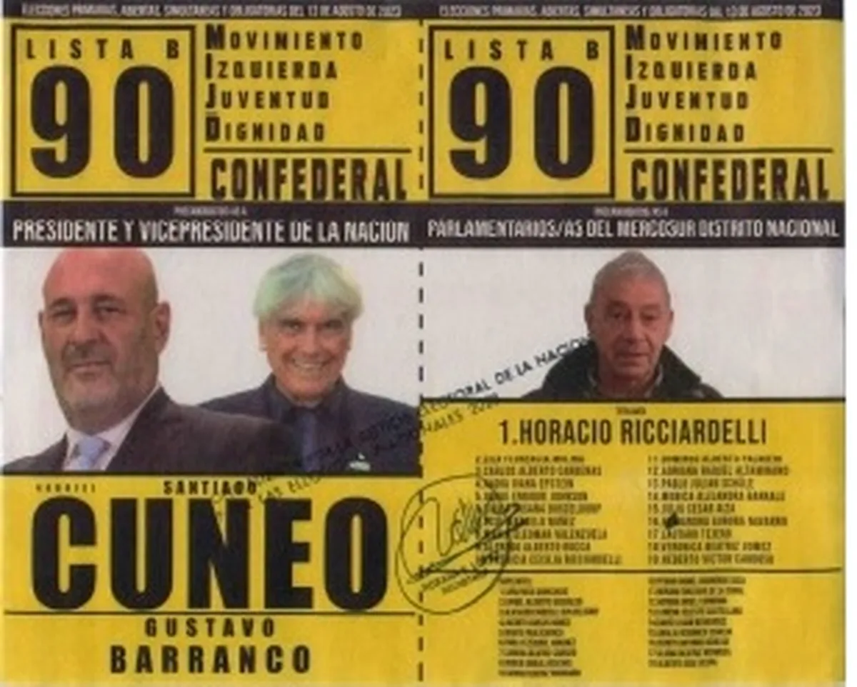 Mientras, el mismo frente propone la lista 90 B Confederal, cuya fórmula presidencial es Santiago Cuneo como precandidato a presidente y Gustavo Barranco como precandidato a vicepresidente. No llevan precandidatos locales.