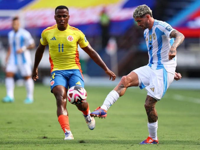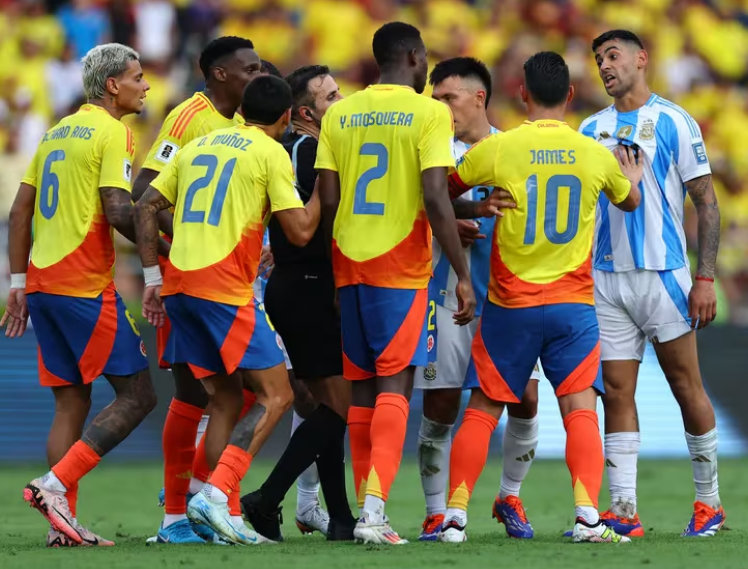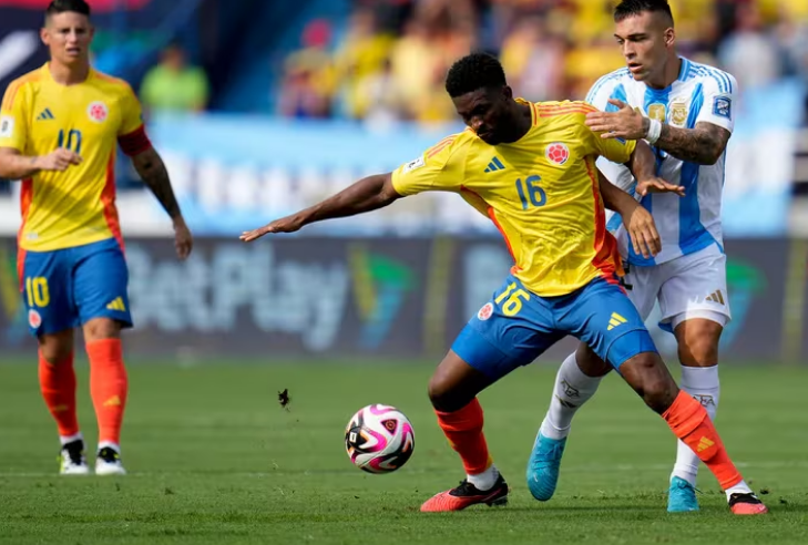 Los equipos dirigidos por los argentinos Lionel Scaloni y Néstor Lorenzo se midieron en la calurosa ciudad de Barranquilla, en el estadio Metropolitano, donde el primero gol colombiano lo hizo Yerson Mosquera a los 24′, empató Nico González a los 2′ del segundo tiempo y James Rodríguez, de penal, marcó el 2 a 1 a los 14′.