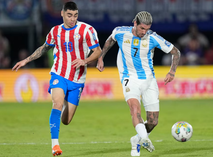 En diez de la segunda mitad, el encuentro se jugaba como quiere Paraguay, y Argentina estaba incómoda. Julián Álvarez pareció desaprovechado como volante/extremo izquierdo, y por momentos faltaron opciones en ataque, ante una marea de defensores locales. Scaloni notó la incomodidad de la Araña, y decidió el ingreso de Garnacho por ese sector, liberando al delantero del Atlético de Madrid para que acompañe en los metros de definición a Lautaro Martínez, con Messi por detrás de ellos. De todas formas, eso no sumó peso ofensivo.