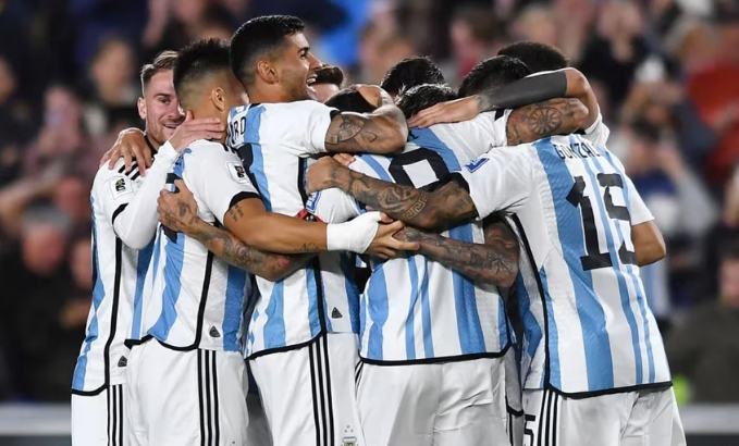 Con Lionel Messi en el banco de los suplentes, el equipo que dirige Lionel Scaloni comenzó decidido a llevarse por delante a su rival en un Monumental repleto. Otamendi apareció en el área para definir con una volea un centro de Rodrigo De Paul y abrió el marcador.