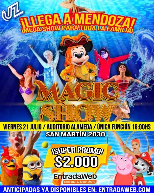 Magic Show trae a la Ciudad de Mendoza «Aventuras en el mar», un viaje imaginario en crucero al mando de Mickey y Minnie donde van a trasladarse para disfrutar de tus personajes favoritos, las princesas más encantadoras y los mejores payasos en vivo.
