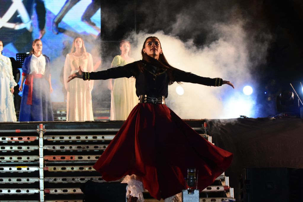 El acto central contó con un importante despliegue artístico donde actores, bailarines y músicos se encargaron de encarnar la historia del argumento a través de la danza y la música a través de siete cuadros, narrados por los periodistas Miguel García Urbani y Emiliano Serrano, que buscaron impactar al pueblo maipucino.