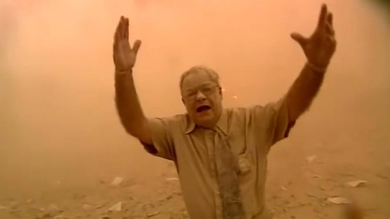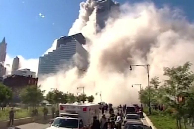Como si se tratara de un violento maremoto, una ola titánica de polvo y escombros se alzó tras caer la Torre Sur e invadió las calles, avanzando tras los talones de los aterrorizados civiles, que huían despavoridos del monstruo blanco. Entre las personas que quedaron bajo la humareda se encontraba LaGanga. En su video, la imagen se vuelve negra. Después, tos, arcadas, y asfixia.
