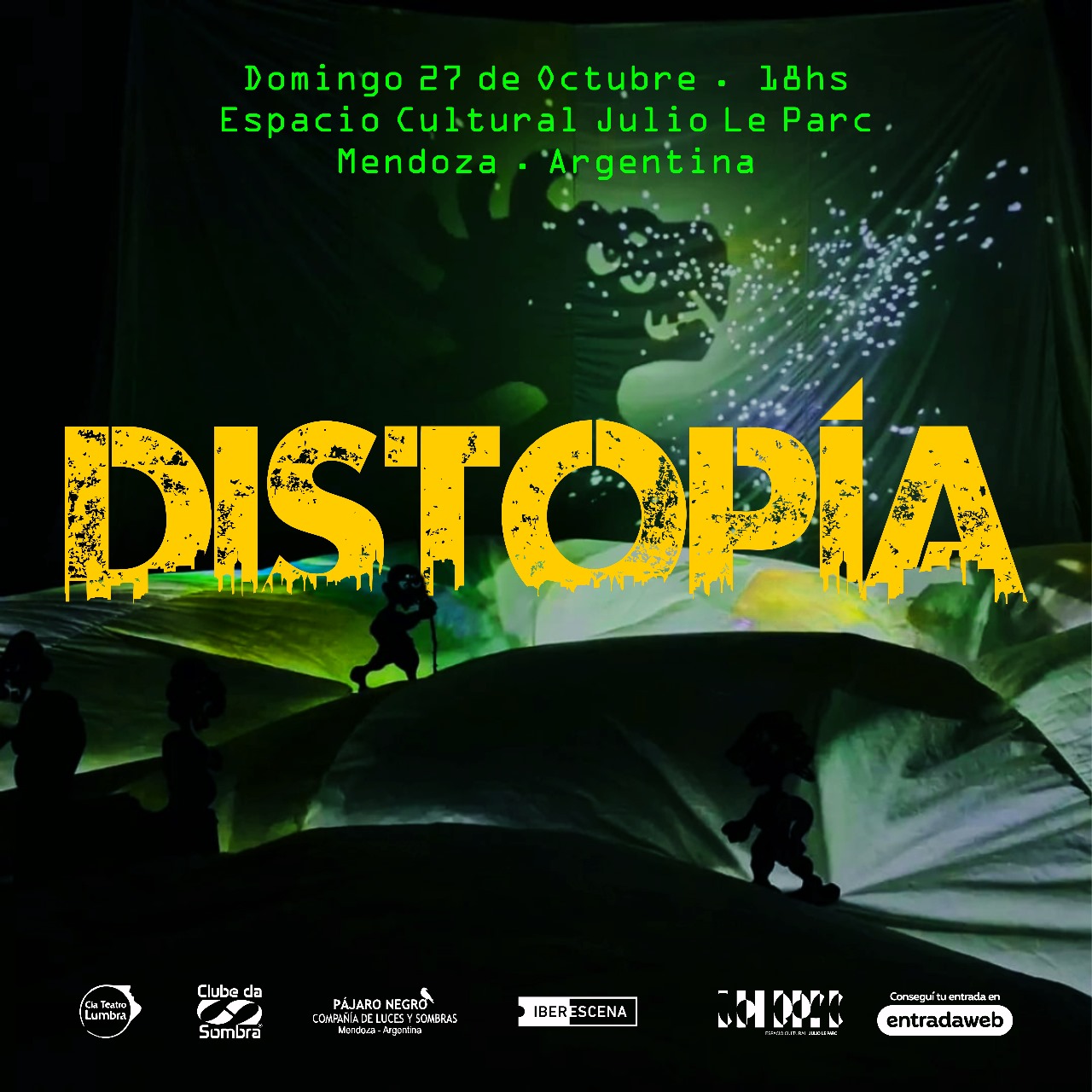 Con un trabajo de dramaturgia construido entre Alexandre Fávero y Pablo Longo y, la dirección de Fávero, “Distopía” es una propuesta de teatro de sombras contemporáneo que posee una mixtura visual que surge de la exploración de los elementos que componen todo el dispositivo, utilizando el movimiento y el espacio como factores centrales, lo que permite investigar sobre las luces, las sombras, los cuerpos, las superficies, y por ende, el trabajo en el tiempo de lectura de las sombras.