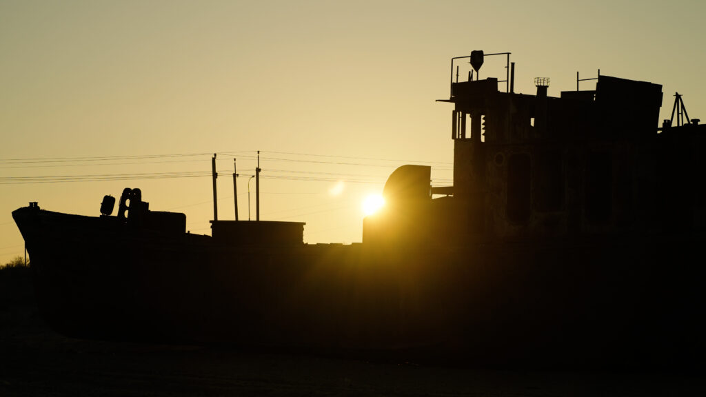 En la inmensa masa de tierra árida esteparia de Asia Central, en la frontera entre los actuales Uzbekistán y Kazajistán se encuentra el que fuera el cuarto lago endorreico del mundo, también conocido como mar de Aral.