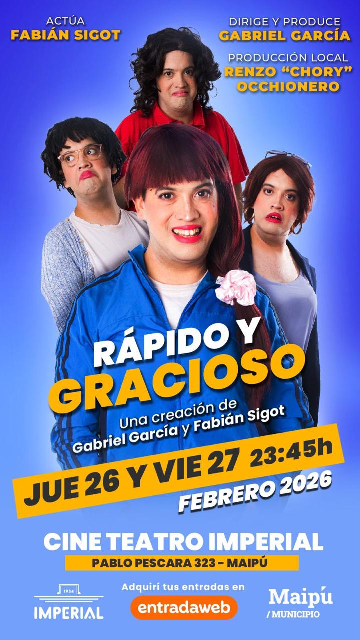 El espectáculo “Rápido y gracioso” se presentará el jueves 26 y viernes 27 de febrero, a las 23.45hs, en el Teatro Imperial (Pablo Pescara 301, Maipú). Las localidades ya están disponibles por EntradaWeb.
