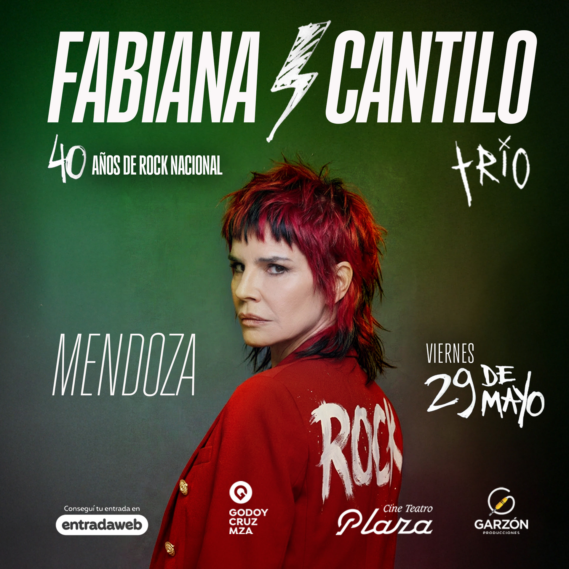 La icónica artista del rock argentino, Fabiana Cantilo (fabitacontenta), se presentará en Mendoza el viernes 29 de mayo de 2026 a las 21:00 horas en el Teatro Plaza de Godoy Cruz, con un espectáculo que recorre cuatro décadas de historia musical. Entradas