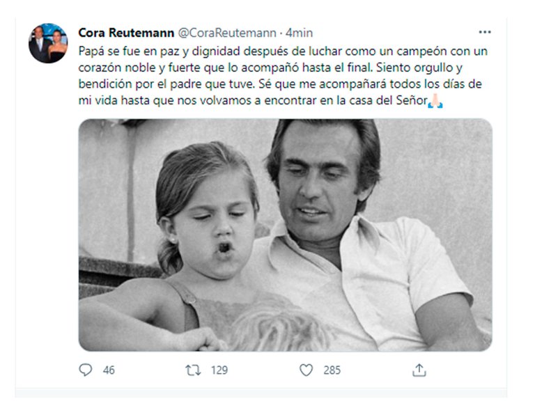 “Papá se fue en paz y dignidad después de luchar como un campeón con un corazón noble y fuerte que lo acompañó hasta el final. Siento orgullo y bendición por el padre que tuve. Sé que me acompañará todos los días de mi vida hasta que nos volvamos a encontrar en la casa del Señor”, informó esta tarde Cora, hija de “Lole”.