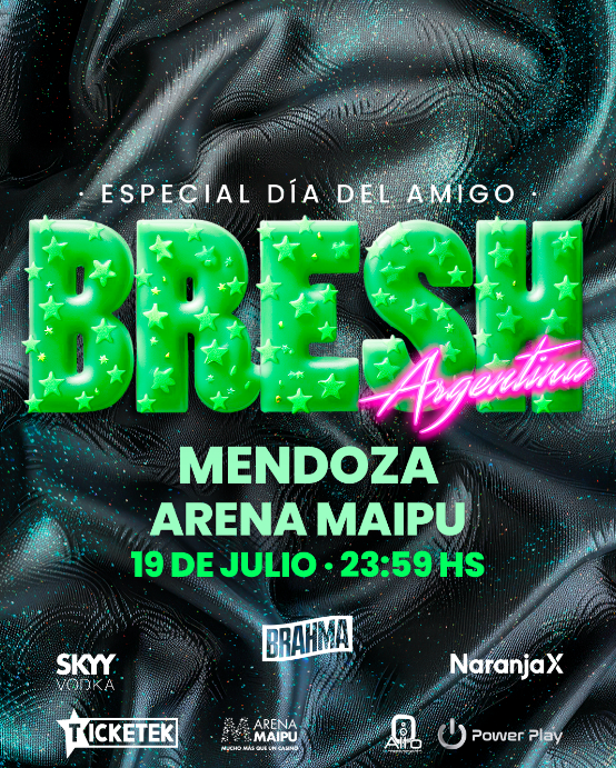 La Fiesta Bresh (bresh) vuelve al Arena Maipú Stadium en su edición especial Día del Amigo. La fiesta más linda del mundo será el sábado 19 de julio, con una noche a puro hit, sorpresas y diversión. Las entradas anticipadas están disponibles en Ticketek.com.ar y boletería del Arena.