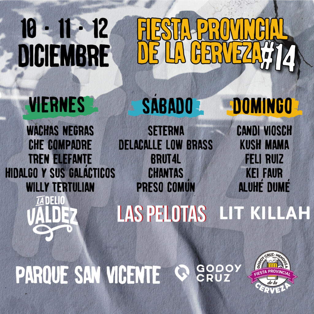 El evento se realizará en el Parque San Vicente de Godoy Cruz y las tres bandas principales que cerrarán cada una de las noches son: La Delio Valdez, Las Pelotas y Lit Killah. Cada una de los grupos musicales actuarán el viernes, sábado y domingo, respectivamente.