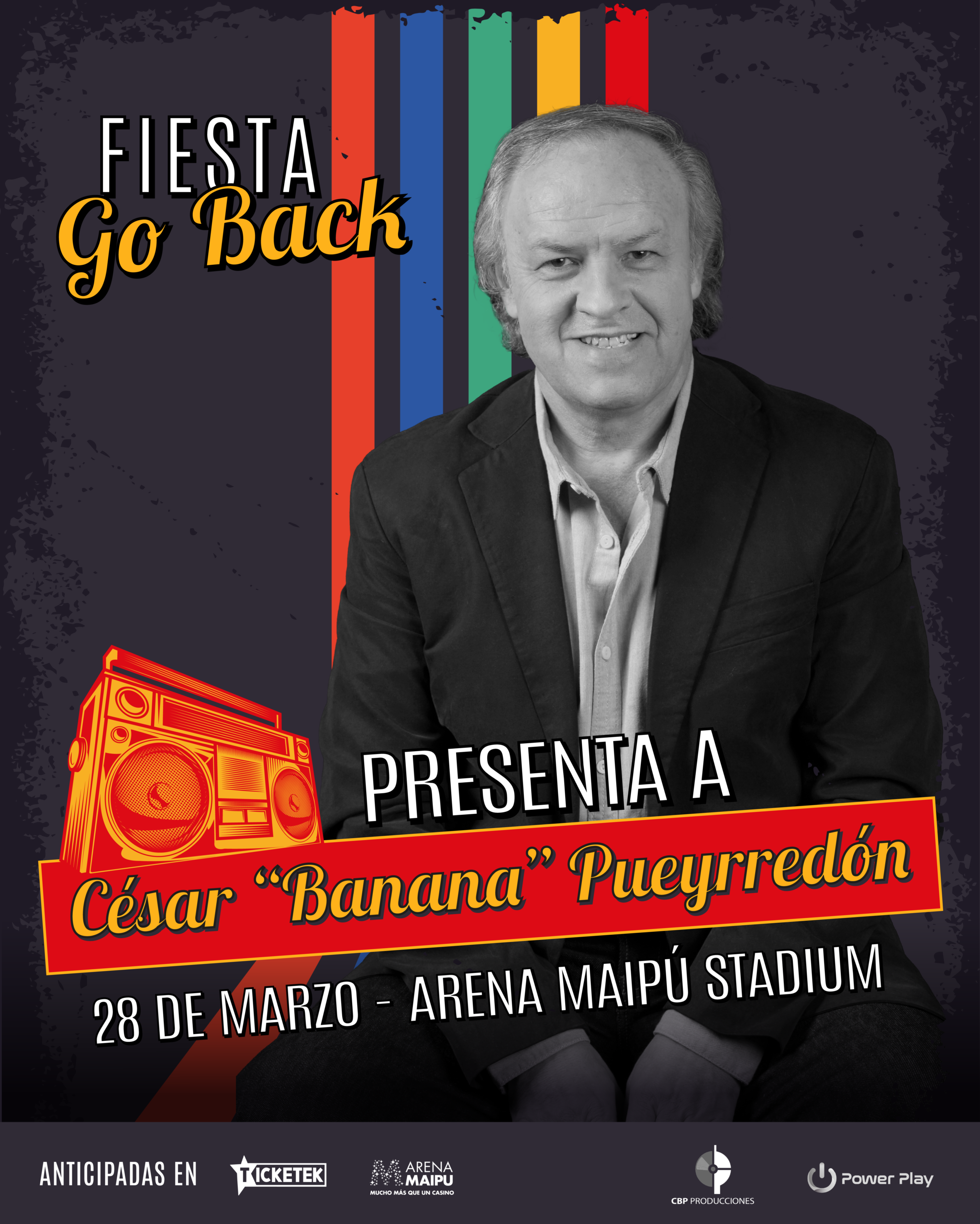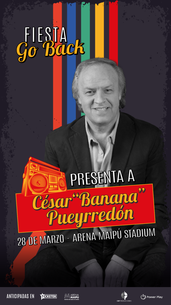 En marzo, llega la tercera edición de la Fiesta Go Back, con el show especial de César “Banana” Pueyrredón (cesarpueyrredonok). La cita será en el Arena Maipú Stadium, el sábado 28 de marzo, con una propuesta que combina lo mejor del pasado con una puesta en escena vibrante y actual. Las entradas están disponibles en Ticketek.com.ar y boletería del Arena.