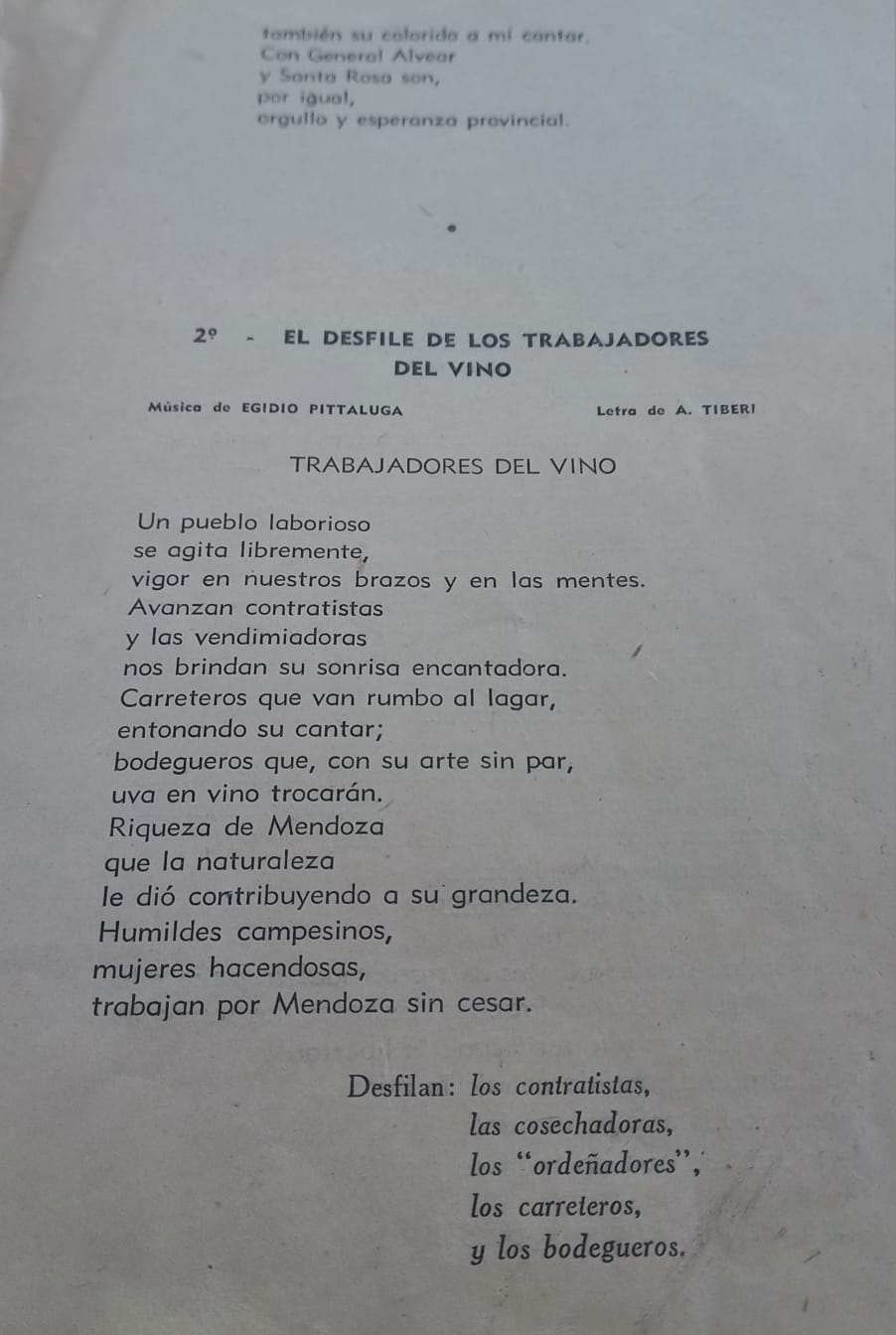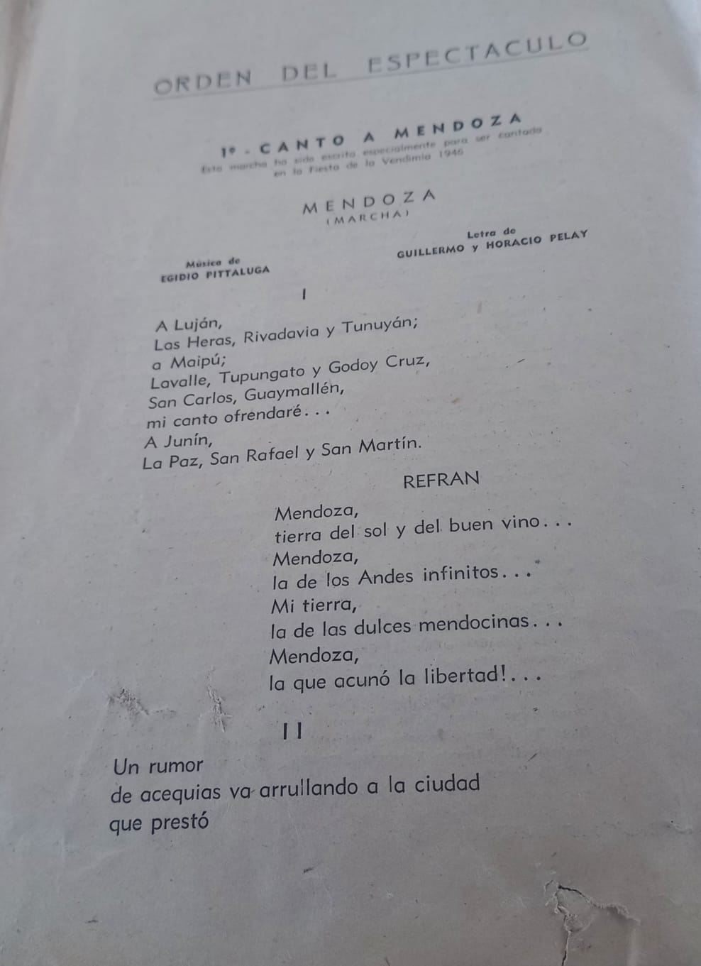 Algo que también disfrutamos mucho durante el recorrido fue de unas joyitas recién llegadas que los presentes tuvimos la posibilidad de ver y tocar también: volantes y programas de las vendimias de 1953, 1954 y muy especialmente de 1946, en la cual por primera vez se imprimió y cantó nuestro himno mendocino, la marcha Canto a Mendoza.