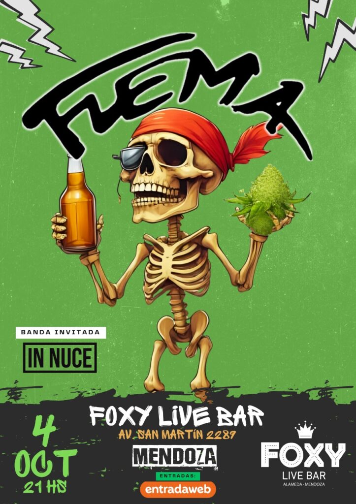 Con más de 30 años en la ruta, y en el marco de los festejos por el relanzamiento de “Nunca nos fuimos” -una de sus canciones más emblemáticas que sonó con fuerza en los ’90-, Flema (oficialflema) regresa a Mendoza. El sábado 4 de octubre, a las 21 horas, la banda se presentará en el Foxy Live Bar –@foxylivebar– (Av. San Martín 2289, Alameda, Cdad.) junto a la banda invitada In Nuce (@in.nuce), para recorrer lo mejor de su discografía y agitar toda su potencia y energía punk.