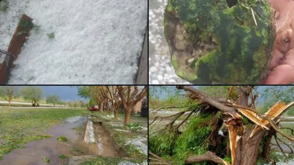 El granizo fue muy intenso, aunque no tuvo un gran tamaño. Lo realmente dañino fue el viento huracanado, que afectó toda la región, especialmente los distritos dela Dormida y Las Catitas, en Santa Rosa.