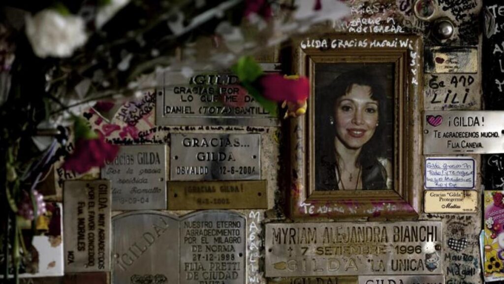 La noticia fue tapa de todos los medios y su cara se multiplicó en remeras y pósters pero también en estampitas. Su figura, con ese halo de magia que impregnaba su tema final y las imágenes de su último disco que la mostraban como una especie de santa con un vestido violeta y una coronita de flores en su cabeza, mirando al cielo, la volvieron magnética. ¿Por qué Gilda, una maestra jardinera transformada en cantante que hasta ese entonces no era tan mediática, causó tanto revuelo tras su muerte?