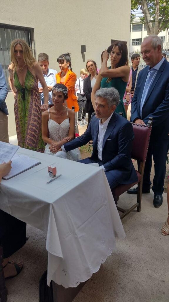 Rodeada de los más allegados, sus padres y sus hermanos, en las imágenes se ve a los novios sentados para celebrar el matrimonio por civil, que lo que se llevó a cabo primero.