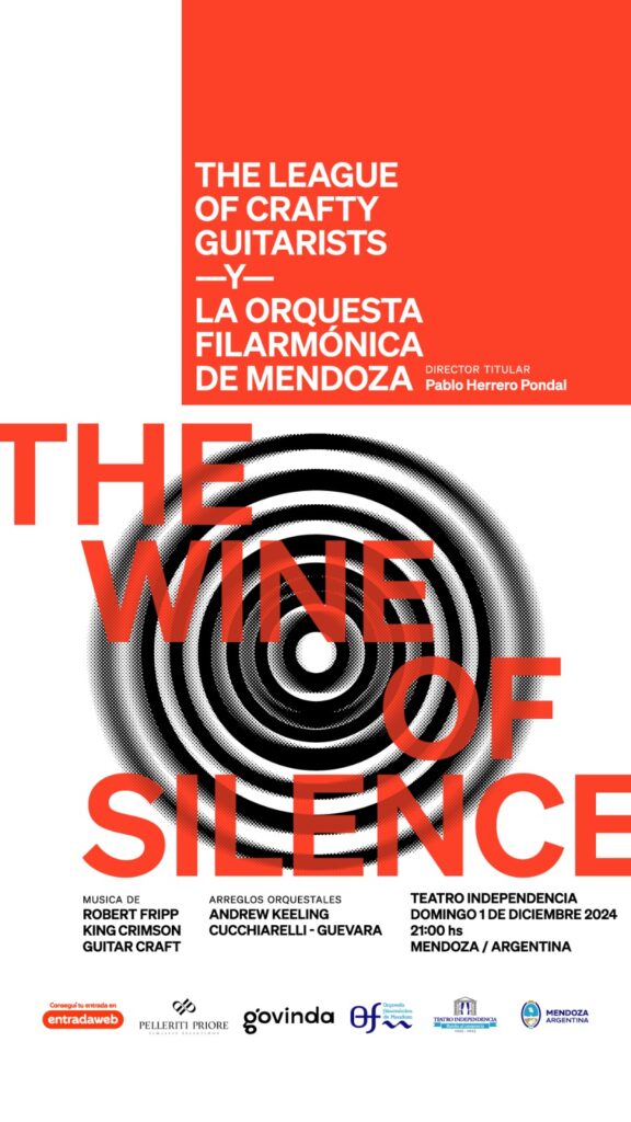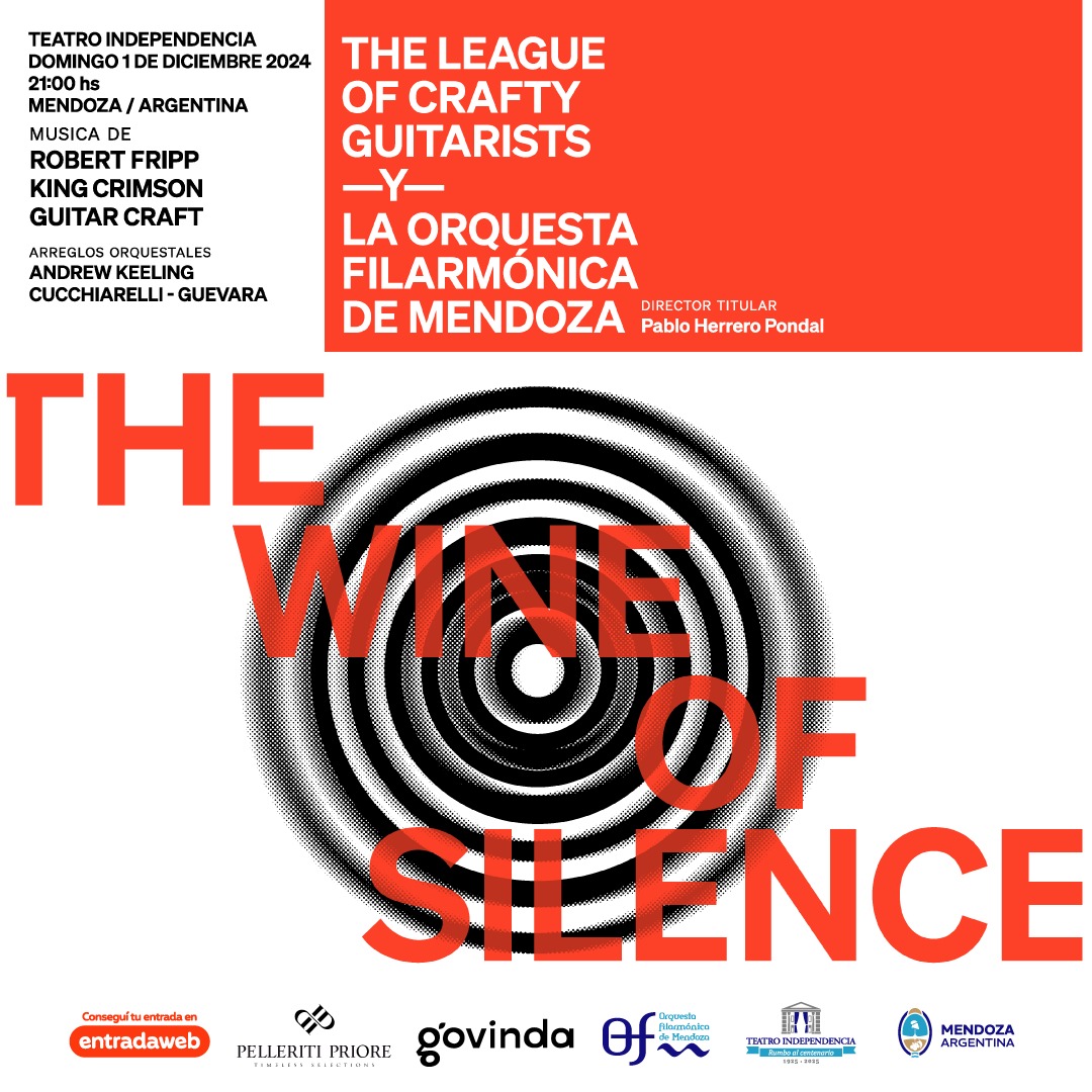 Se viene un gran estreno mundial en nuestra provincia. “The Wine of Silence”, una fusión mágica de música clásica, rock y música experimental contemporánea. El próximo 1 de diciembre, a las 21h, el Teatro Independencia (Chile y Espejo, Cdad.) será testigo de un evento sin igual de la mano de una innovadora colaboración entre The League of Crafty Guitarists y La Orquesta Filarmónica de Mendoza. Tickets: www.entradaweb.com.ar