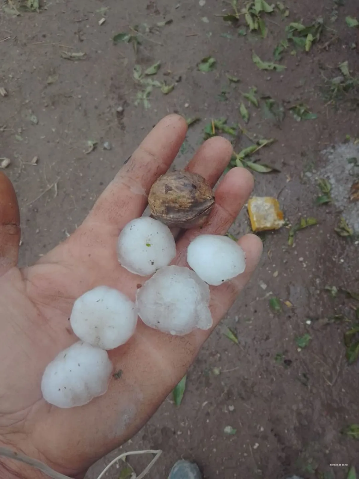 En la mañana de este jueves, los productores afectados salieron a recorrer sus fincas para determinar los daños sufridos. En el siguiente video se ve cómo sacaron las piedras de granizo que aún se mantenían.